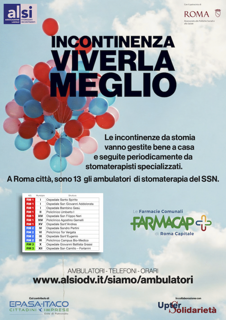 A Roma città, sono 13 gli ambulatori di stomaterapia del SSN nella Rete della Regione Lazio.